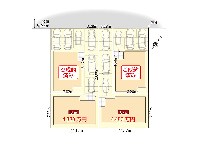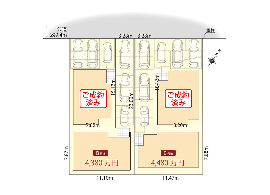 | 建物面積 | 108.91m2(C号棟)~114.29m2(B号棟) | 土地面積 | 137.04m2(B号棟)~140.11m2(C号棟) |