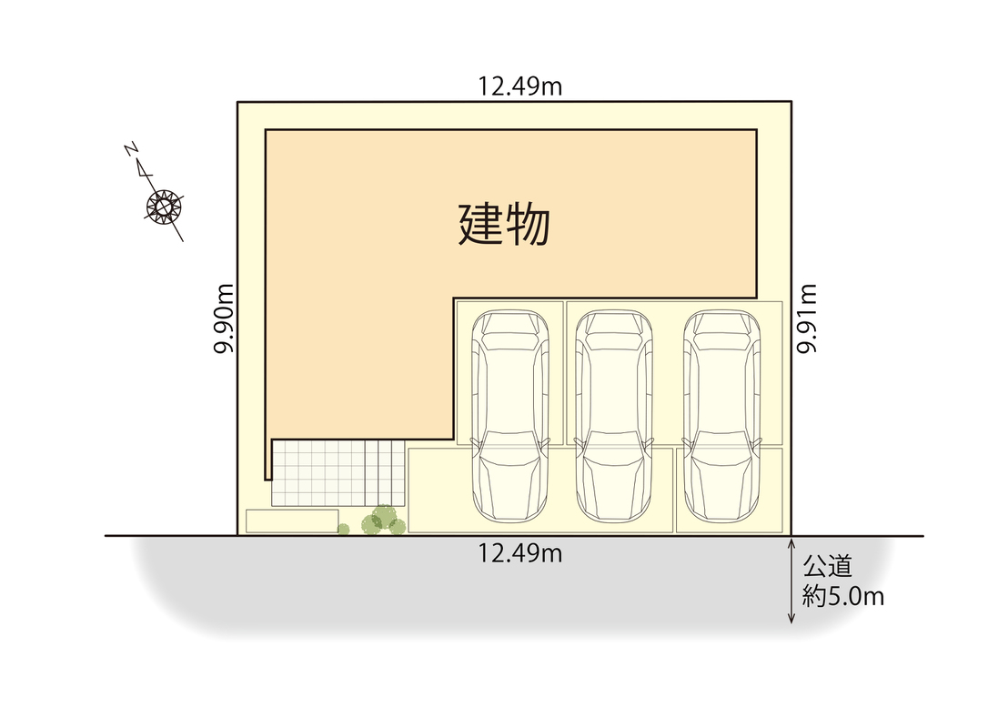 | 駐車場 | 3台 | 道路の幅員 | 南西側5.0m |