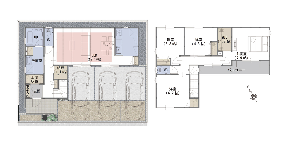 - ※完成予想図やCG合成画像は、門塀・植栽・庭・外観等、実際とは多少異なる場合があります。