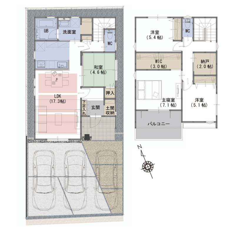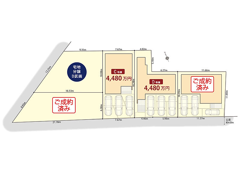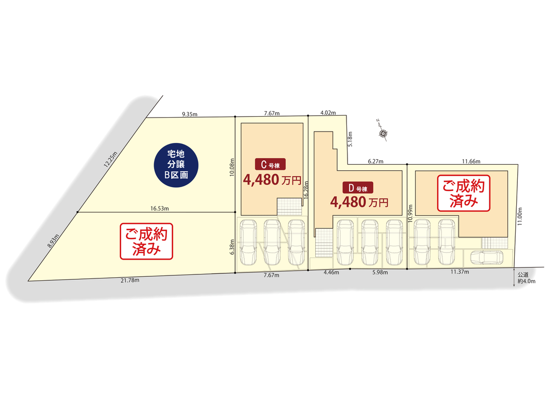 | 建物面積 | 104.76m2(C号棟)~111.39m2(D号棟) | 土地面積 | 125.61m2(C号棟)~136.23m2(D号棟) |