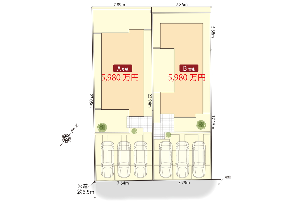 | 建物面積 | 104.35m2(A号棟)・104.76m2(B号棟) | 土地面積 | 178.68m2(A・B号棟) |