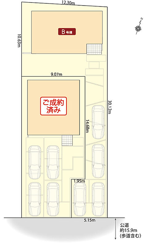 | 駐車場 | 4台 | 道路の幅員 | 15.9m(歩道含む) |