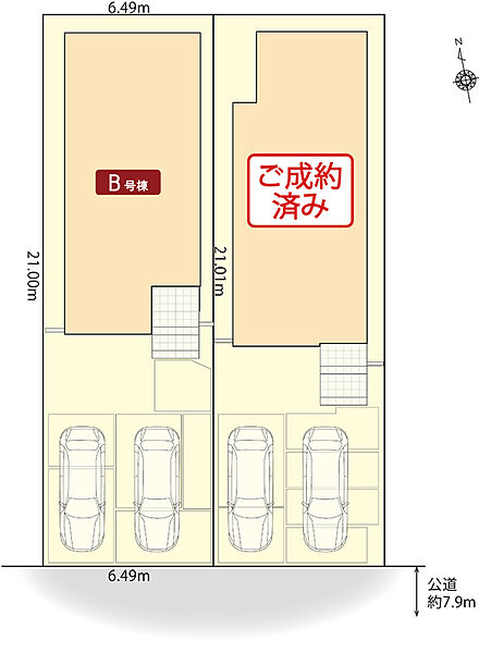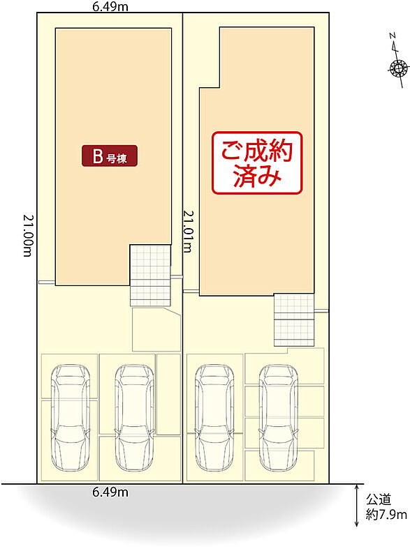 | 駐車場 | 2台 | 道路の幅員 | 南側公道約7.9m |