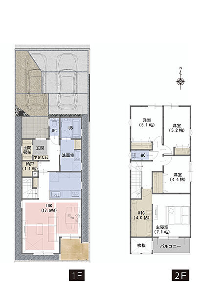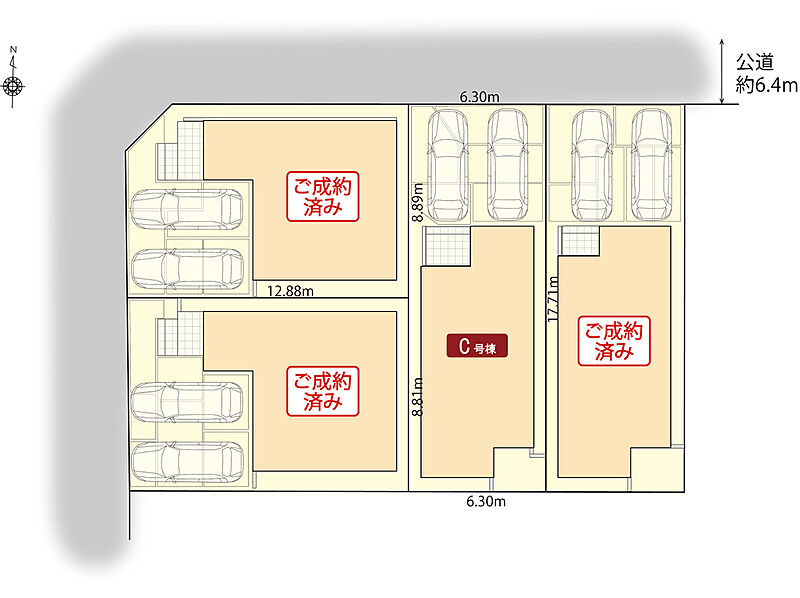 | 駐車場 | 2台(並列駐車2台) | 道路の幅員 | 北側6.4m |
