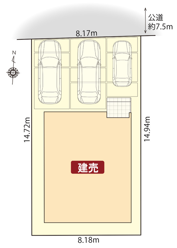 | 駐車場 | 3台 | 道路の幅員 | 北側7.5m |
