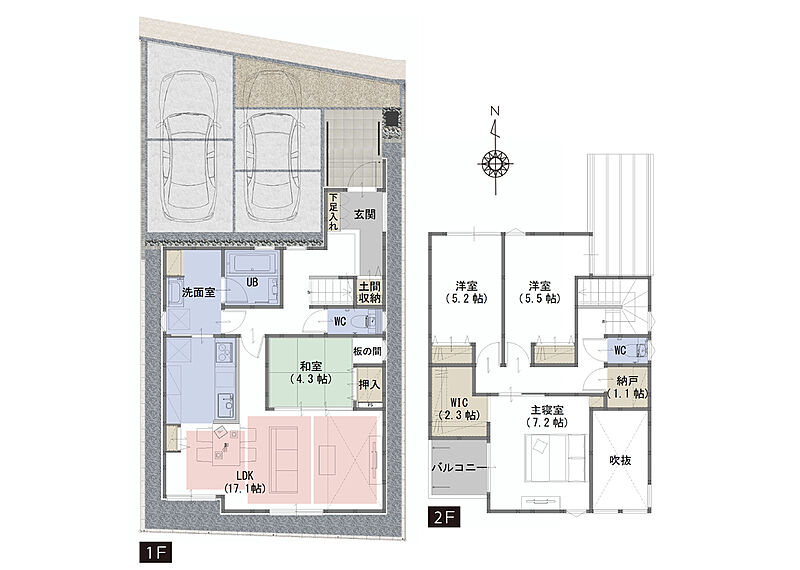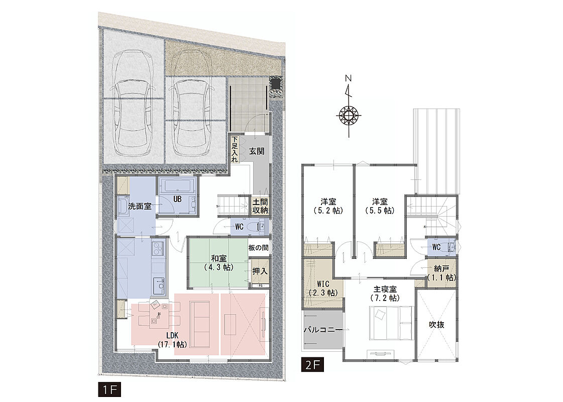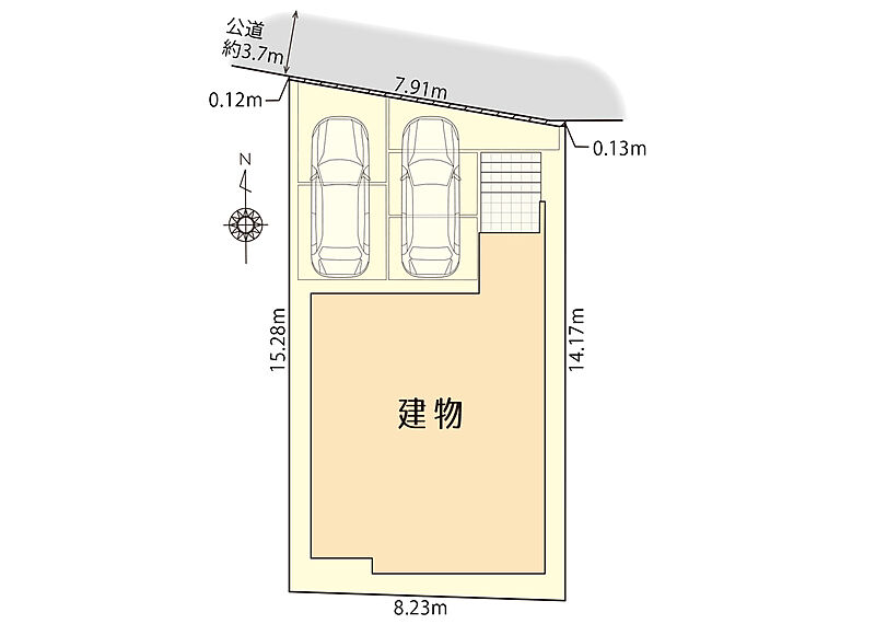 | 駐車場 | 2台 | 道路の幅員 | 北側3.7m(セットバック0.97m含まない) |