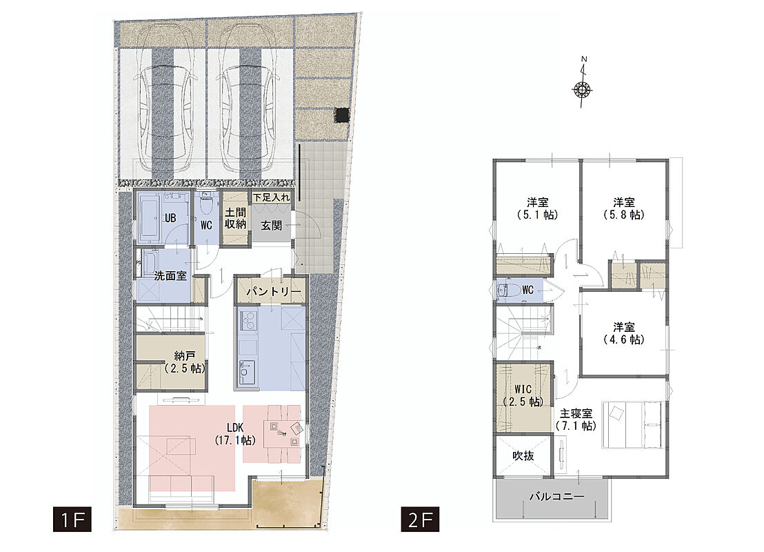 | 建物面積 | 103.94m2(F号棟)・96.9m2(G号棟) | 土地面積 | 117.67m2(F号棟)・140.91m2(G号棟) |