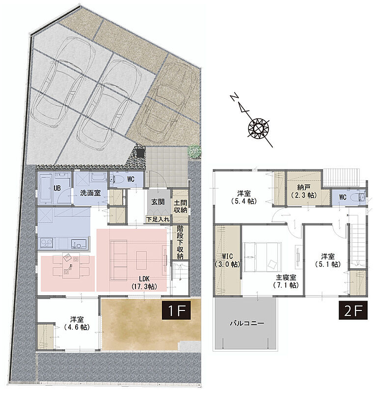 WIC、納戸、土間収納など生活スタイルに合わせて住空間を確保