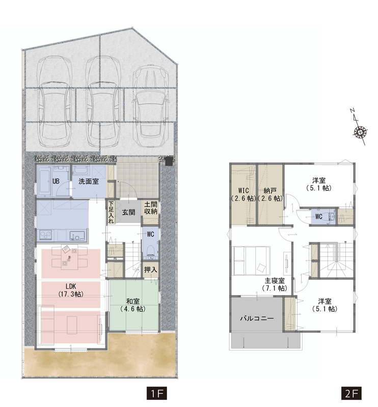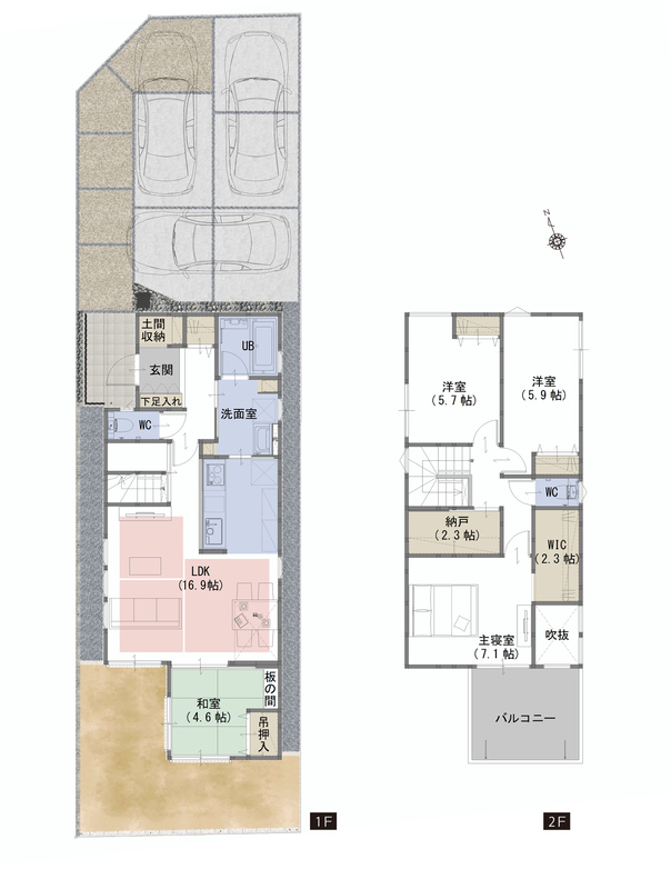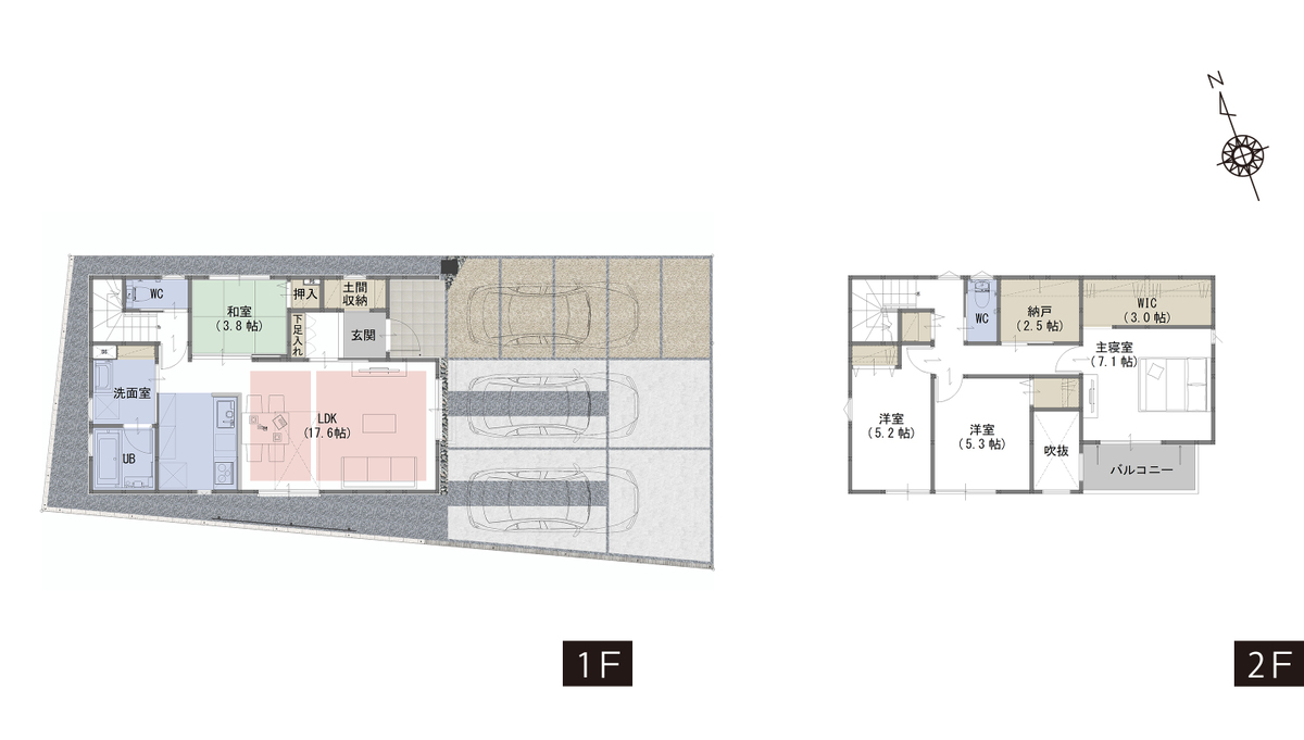 WIC、納戸、土間収納など生活スタイルに合わせて住空間を確保