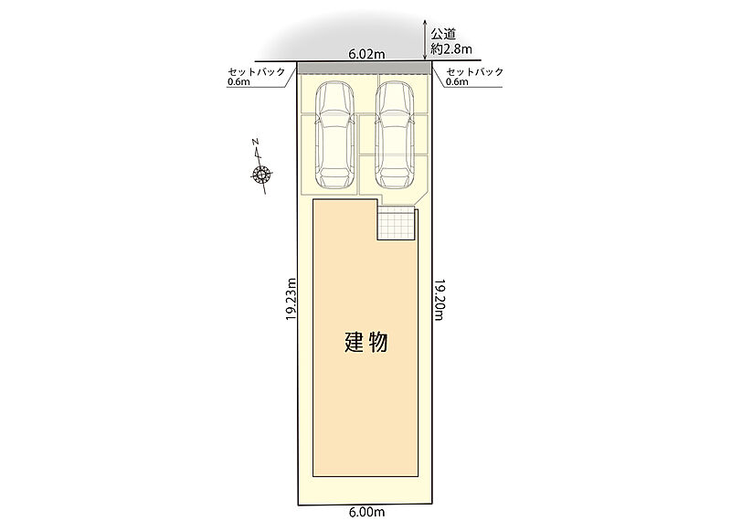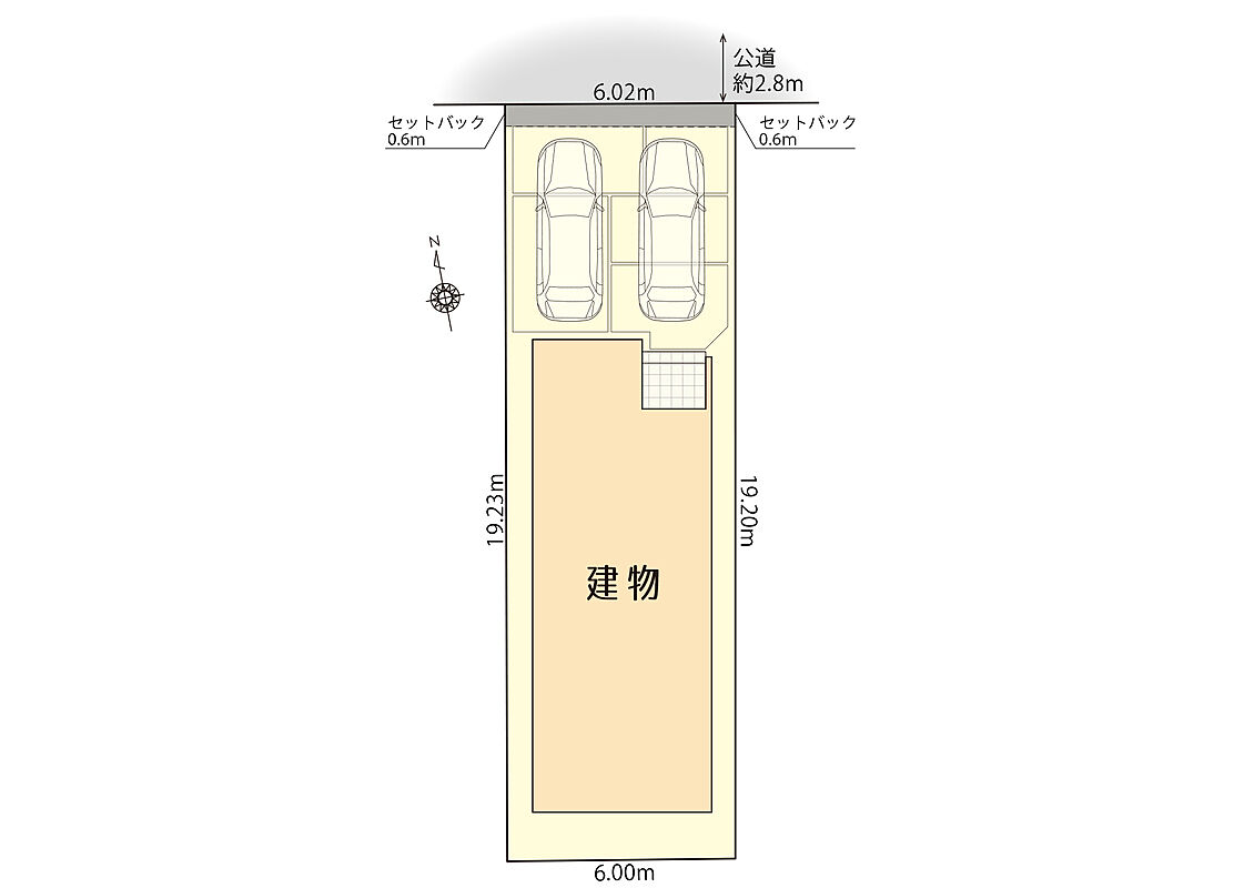 | 駐車場 | 2台 | 道路の幅員 | 北東側2.8m |