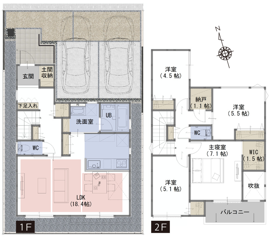 WIC、納戸、土間収納など生活スタイルに合わせて住空間を確保