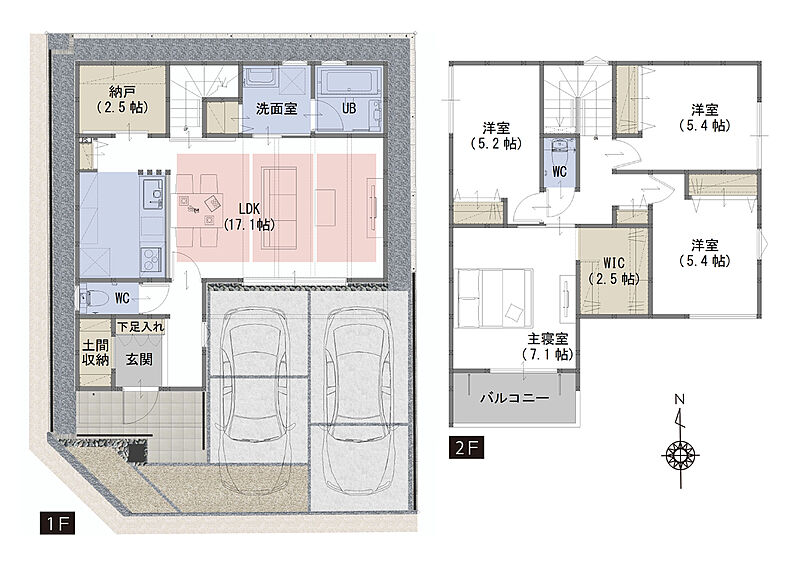 | 間取り | 4LDK+WIC+土間収納+納戸 | 建物構造 | 木造2階建て |
