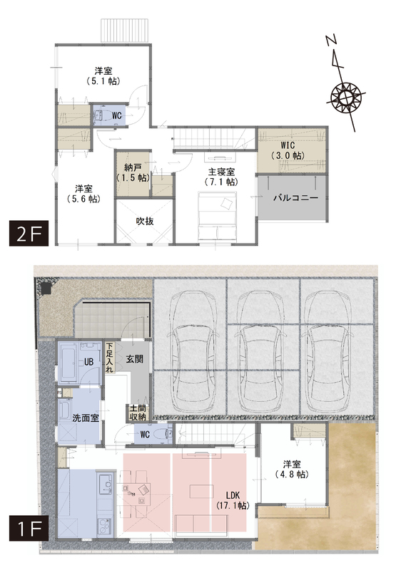 WIC、納戸、土間収納など生活スタイルに合わせて住空間を確保