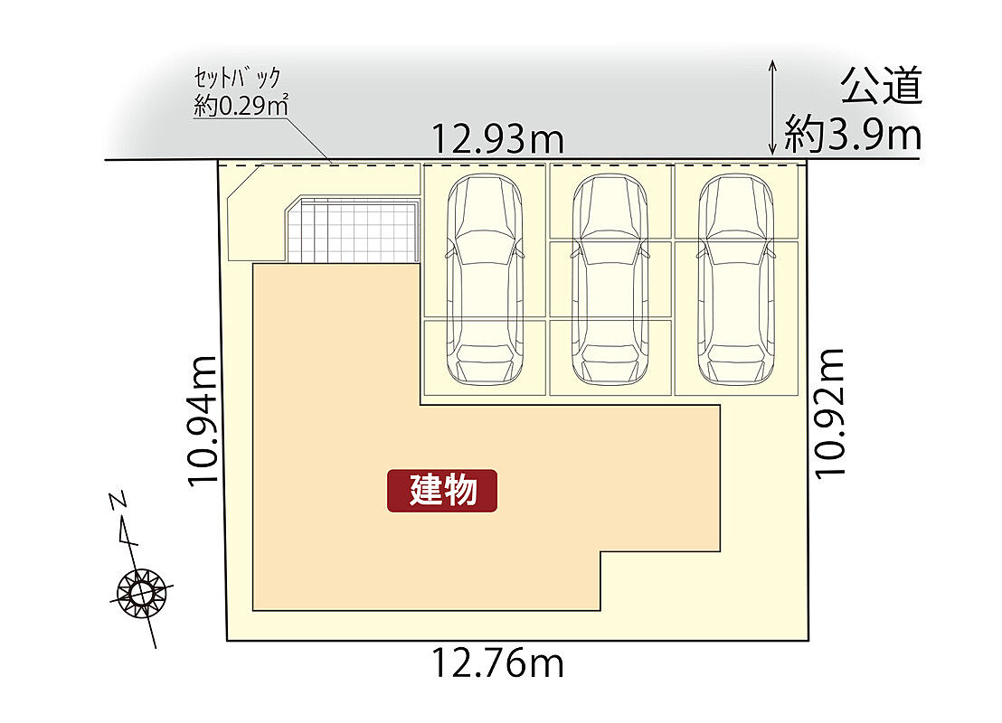 | 駐車場 | 3台 | 道路の幅員 | 北側公道幅員約3.9m |