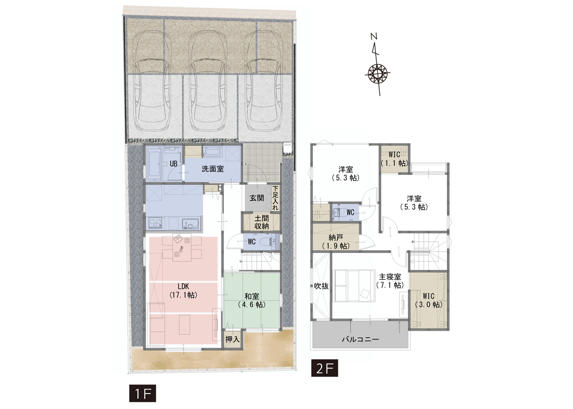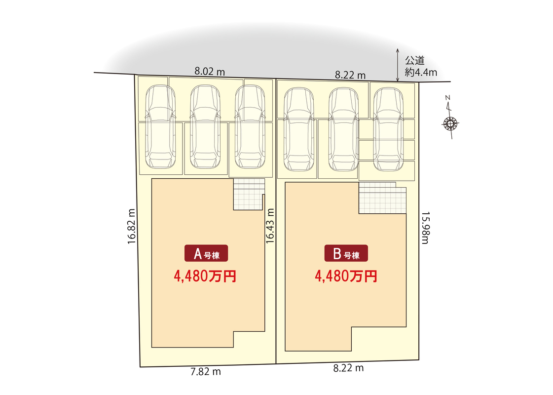 - 131.85m2(A号棟)・133.18m2(B号棟)