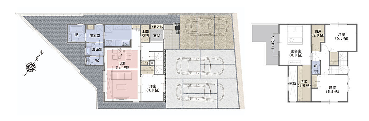 - ※完成予想図やCG合成画像は、門塀・植栽・庭・外観等、実際とは多少異なる場合があります。