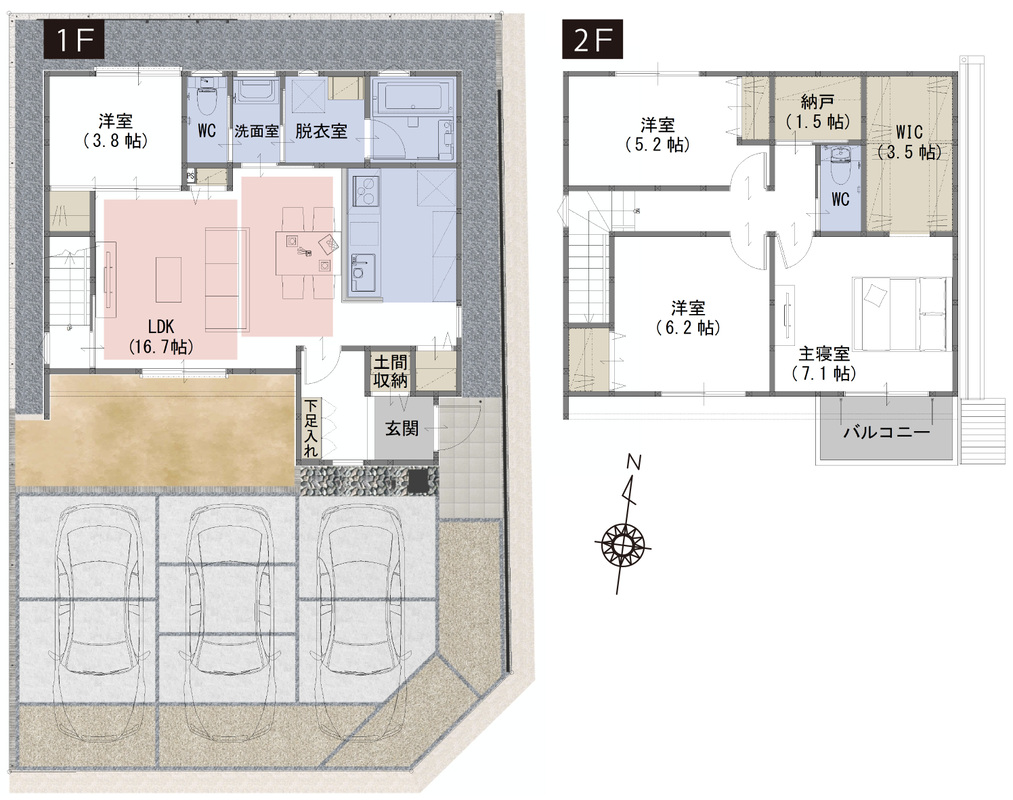 WIC、納戸、土間収納など生活スタイルに合わせて住空間を確保