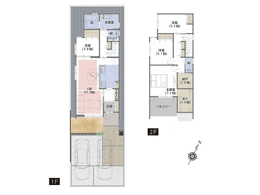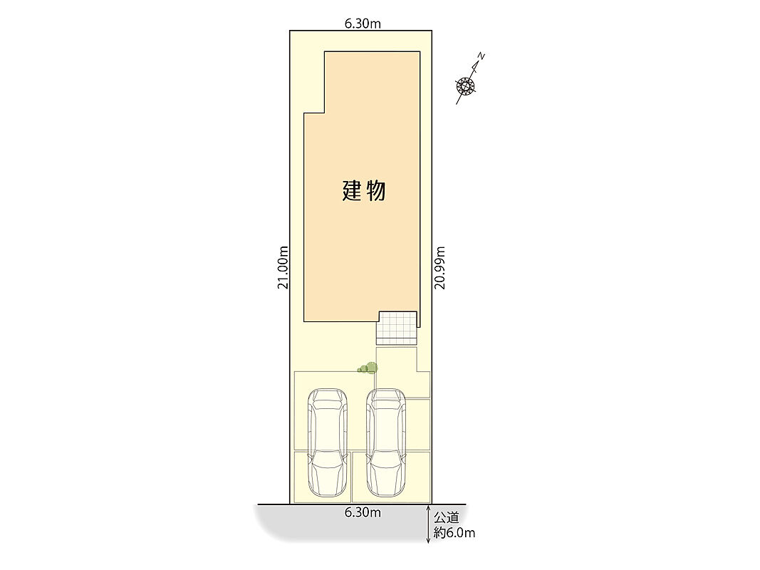 | 駐車場 | 2台 | 道路の幅員 | 南側6.0m |