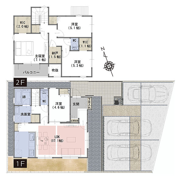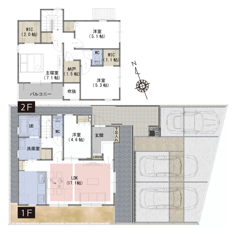 WIC、納戸、土間収納など生活スタイルに合わせて住空間を確保