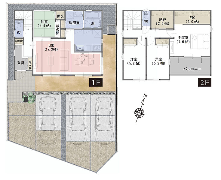 WIC、納戸、土間収納など生活スタイルに合わせて住空間を確保