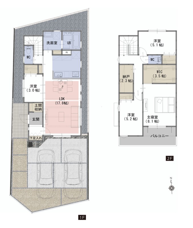 | 駐車場 | 3台(車種によります) | 道路の幅員 | 南側7.2m 西側9.0m |