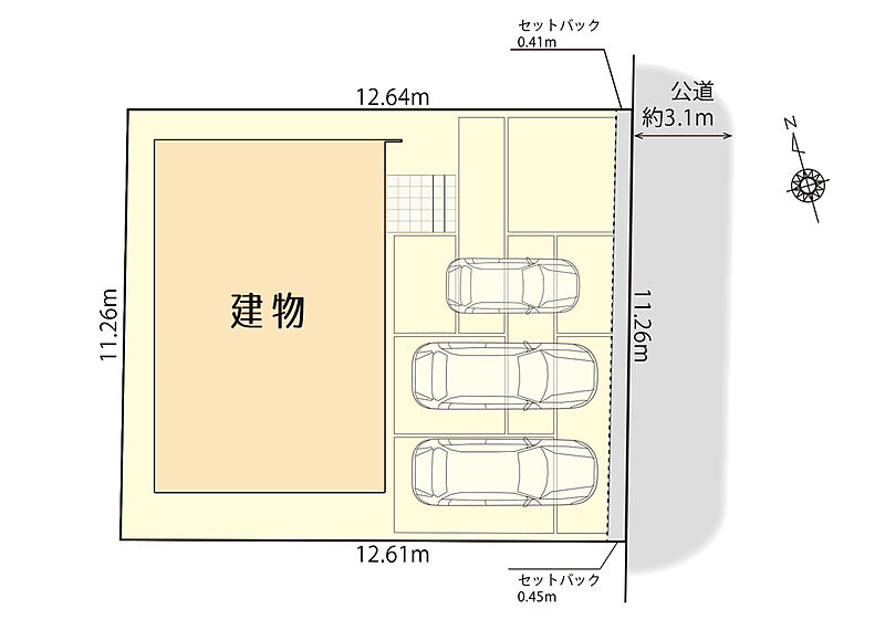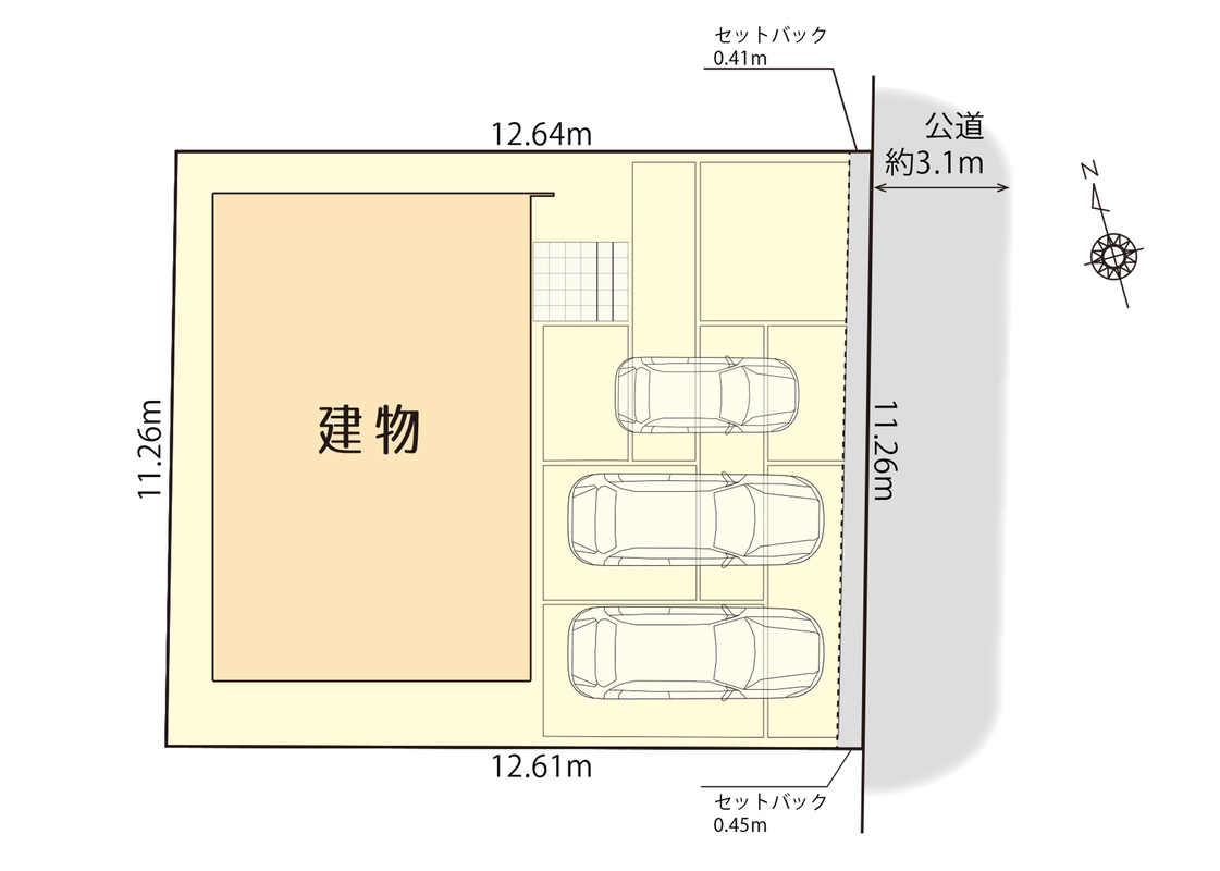 | 駐車場 | 2台 ~ 3台(車種による) | 道路の幅員 | 東側3.1m |