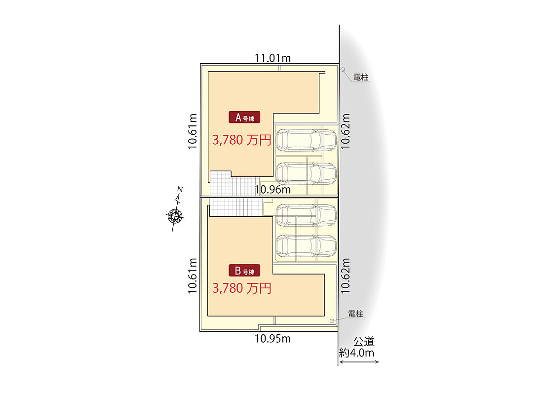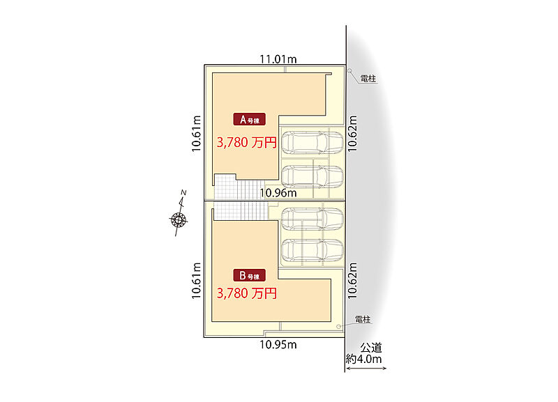 | 建物面積 | 99.59m2(B号棟)~102.90m2(A号棟) | 土地面積 | 115.83m2 |