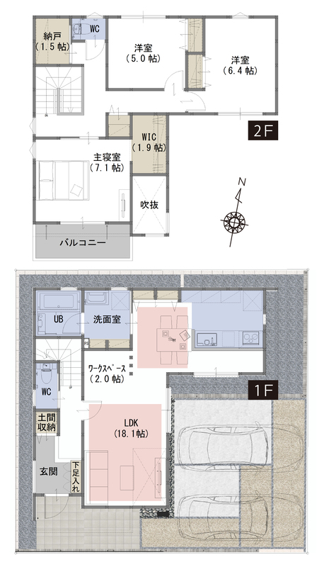 WIC、納戸、土間収納など生活スタイルに合わせて住空間を確保