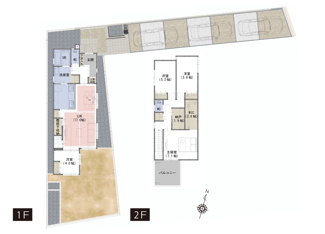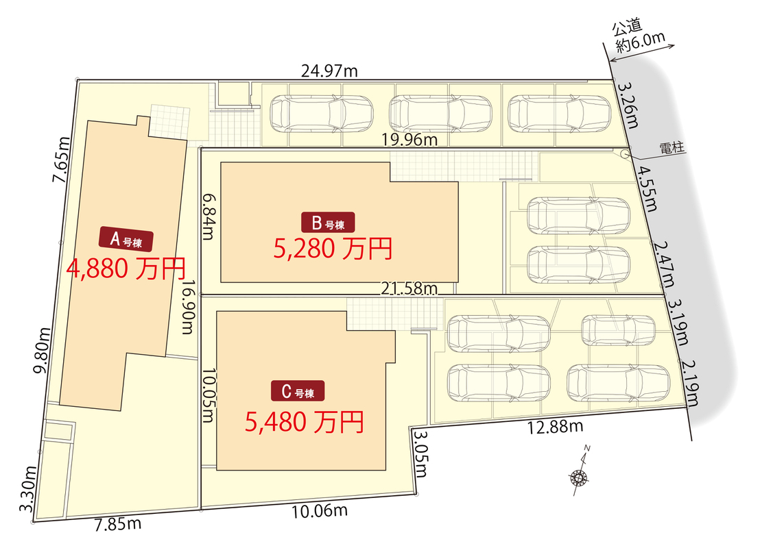 | 建物面積 | 102.28m2(C号棟)~104.35.m2(B号棟) | 土地面積 | 142.29m2(B号棟)~200.52m2(A号棟) |