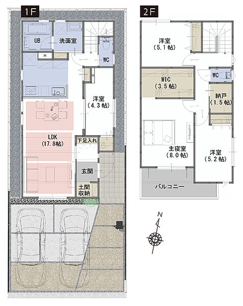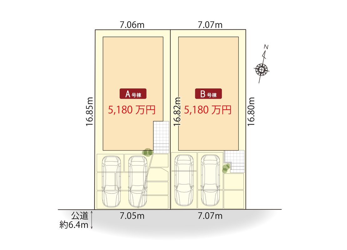 | 建物面積 | 103.94m2(A号棟)~104.56m2(B号棟) | 土地面積 | 118.87m2(A号棟)~118.90m2(B号棟) |