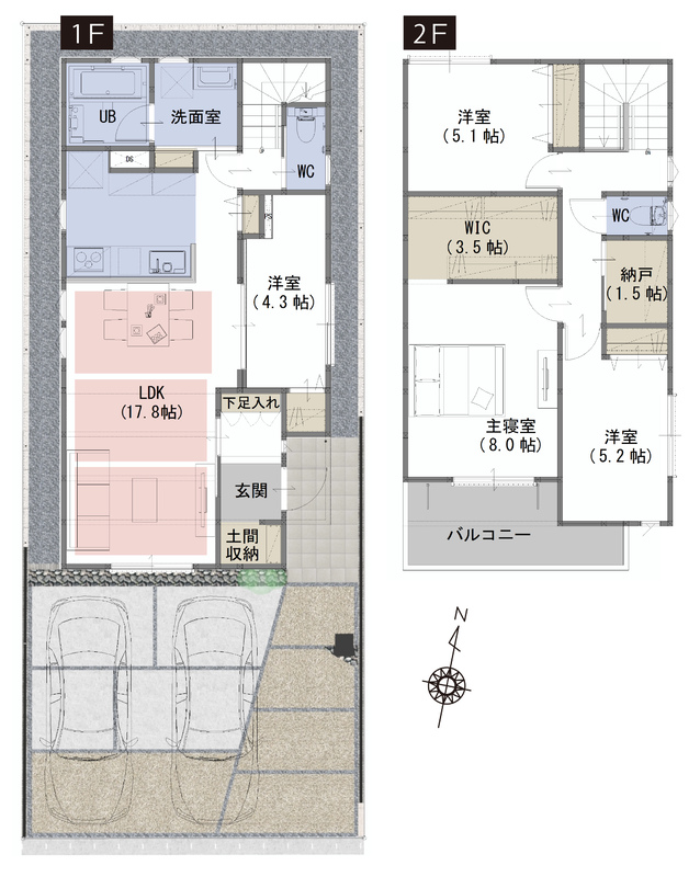 WIC、納戸、土間収納など生活スタイルに合わせて住空間を確保