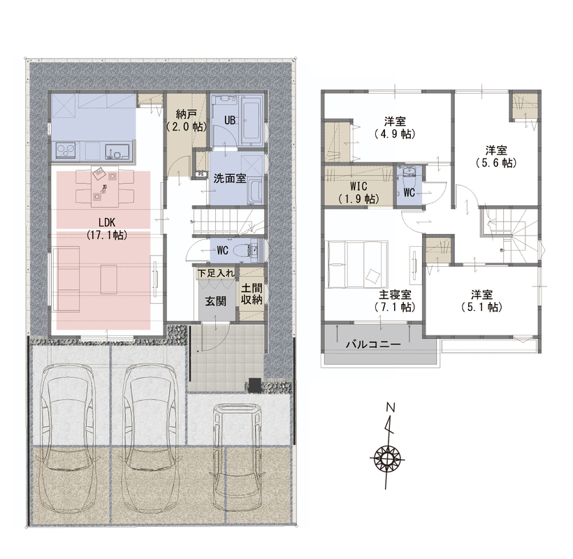 WIC、納戸、土間収納など生活スタイルに合わせて住空間を確保