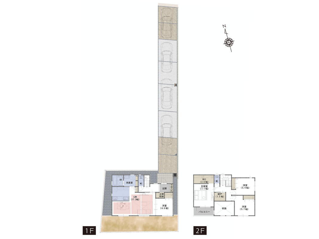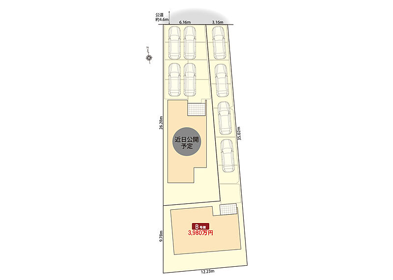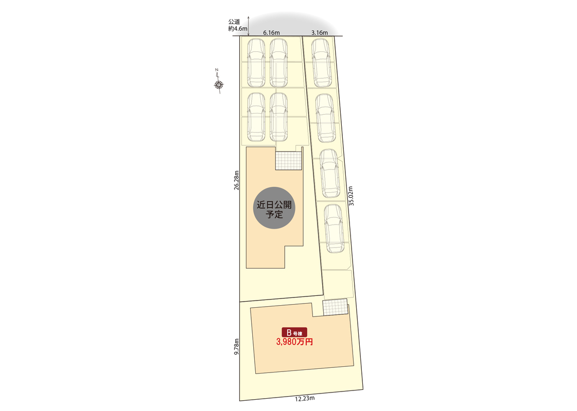 | 駐車場 | 4台 | 道路の幅員 | 北側4.6m |