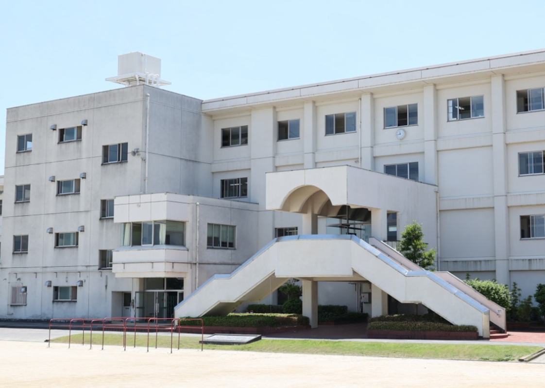 全14学級、生徒数370人(2024年度)。五条川は学校の校門...