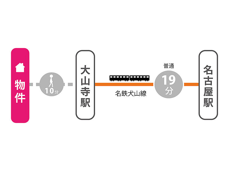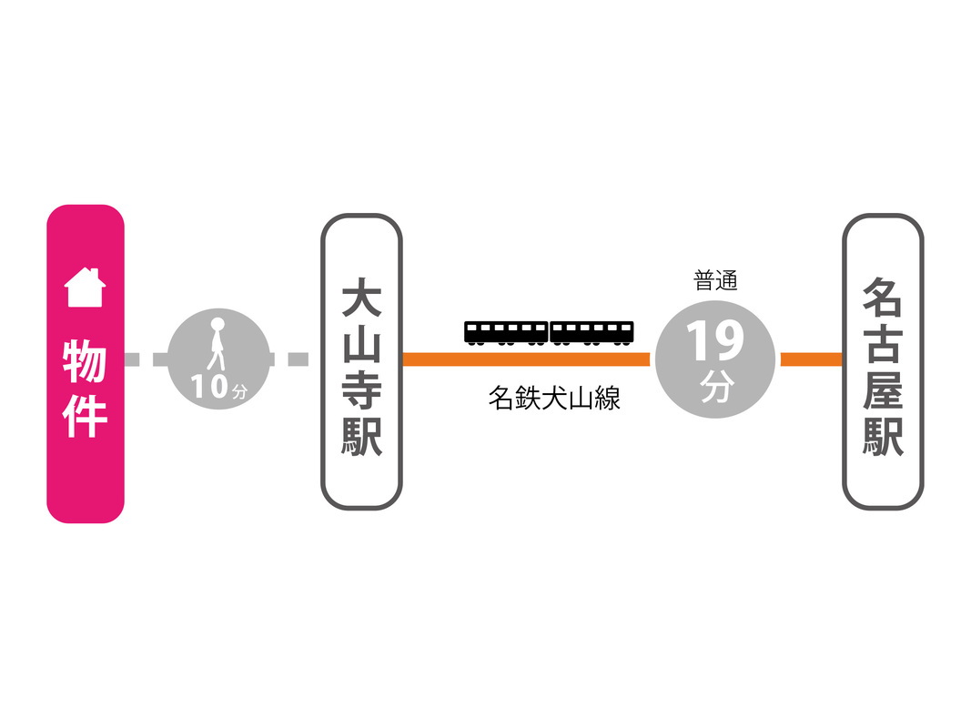 名鉄犬山線「大山寺」駅 徒歩10分 名鉄犬山線「岩倉」駅 徒歩14分 名鉄犬山線「徳重・名古屋芸大」駅 徒歩23分 |