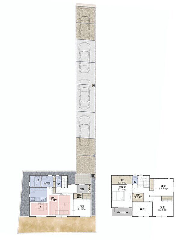 | 間取り | 4LDK+WIC+土間収納+納戸 | 建物構造 | 木造2階建て |