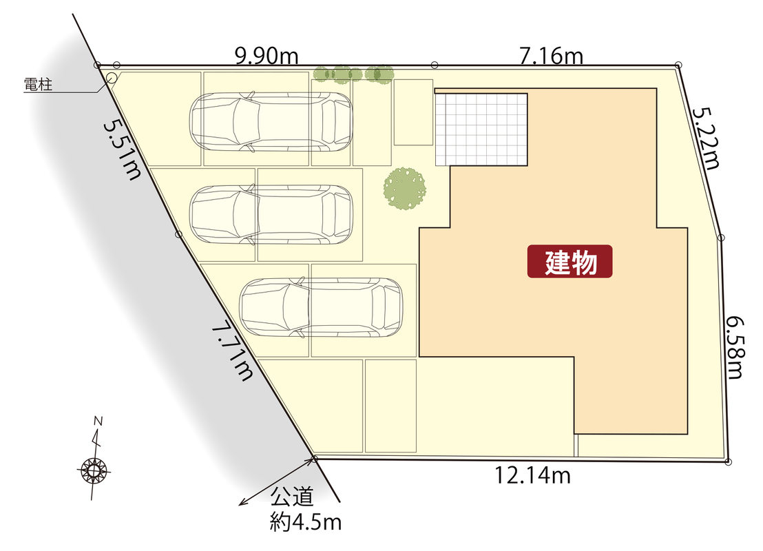 | 駐車場 | - | 道路の幅員 | 南西側幅員約4.5m |