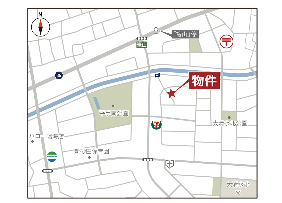 名古屋市営桜通線「徳重」駅 徒歩25分 市営バス「篭山」停 徒歩4分 地下鉄桜通線「徳重」駅まで乗車6分 市営バス「篭山」停 徒歩4分 地下鉄桜通線「鳴子北」駅まで乗車25分 |