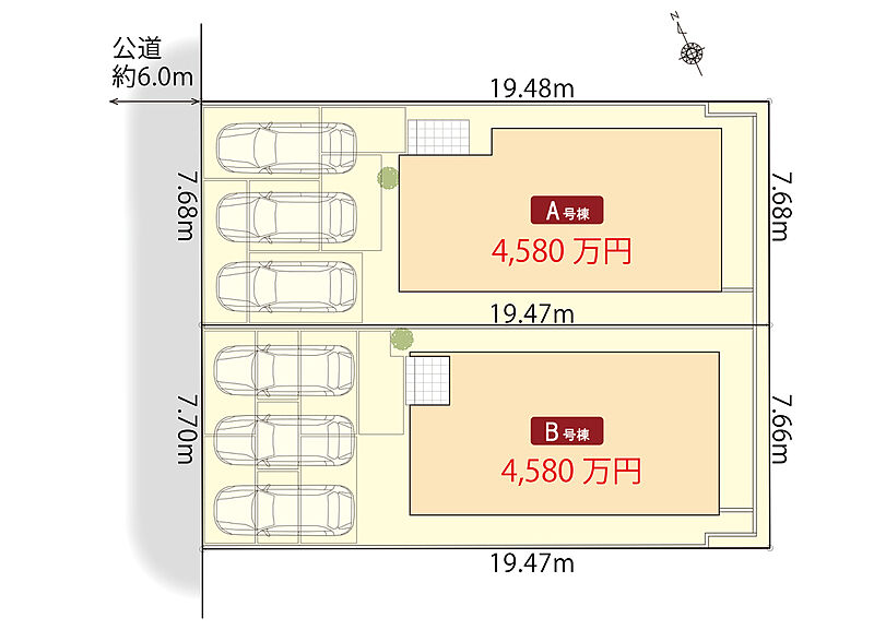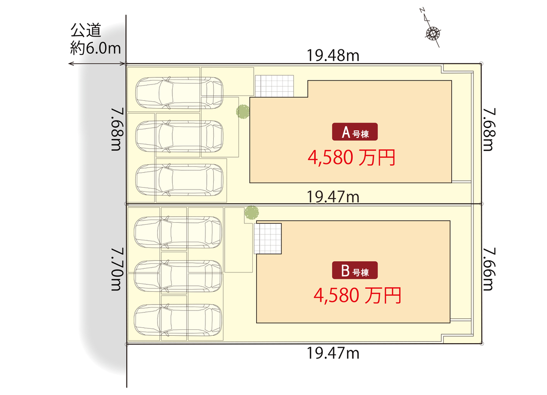 | 建物面積 | 104.14m2(A号棟)・104.56m2(B号棟) | 土地面積 | 149.60m2(A号棟)・149.59m2(B号棟) |