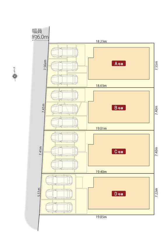 | 駐車場 | 3台 | 道路の幅員 | 西側6.0m |