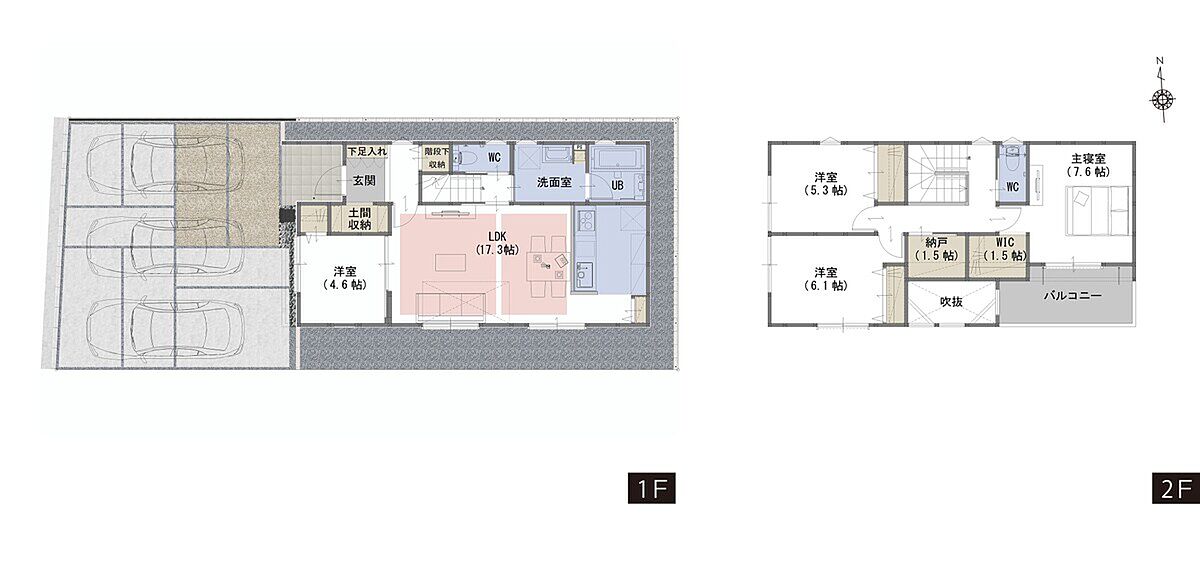 - ※完成予想図やCG合成画像は、門塀・植栽・庭・外観等、実際とは多少異なる場合があります。
