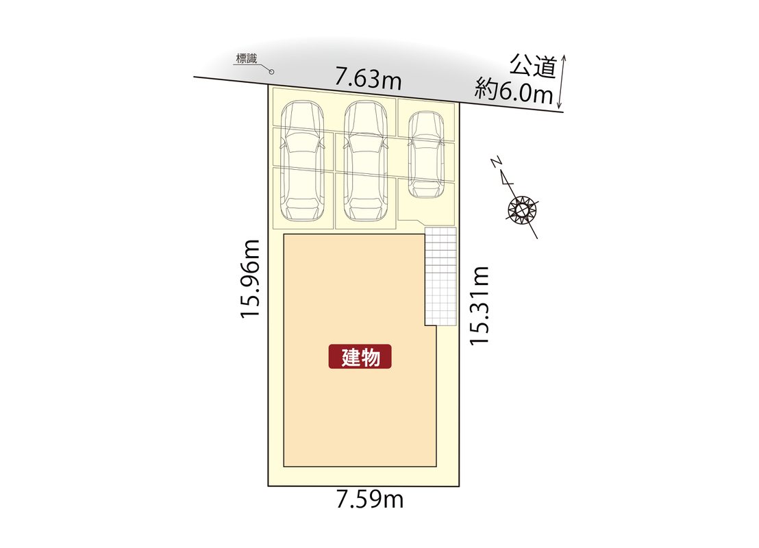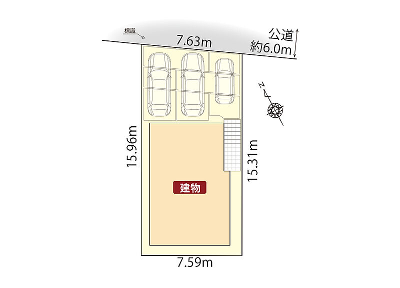 | 駐車場 | 3台 | 道路の幅員 | 北東側公道幅員約6.0m |