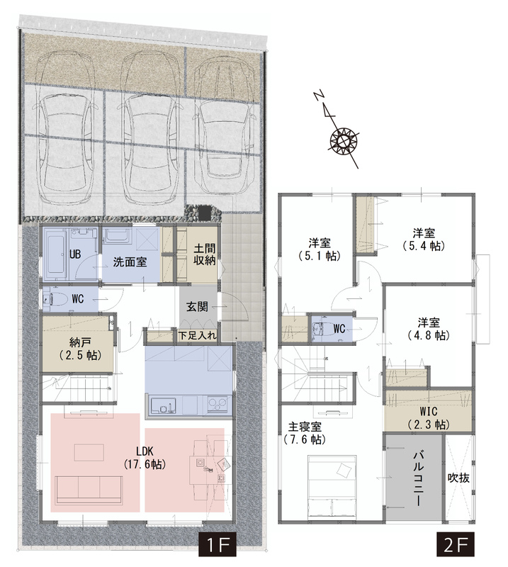 WIC、納戸、土間収納など生活スタイルに合わせて住空間を確保