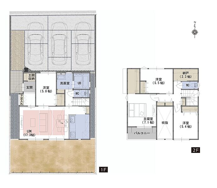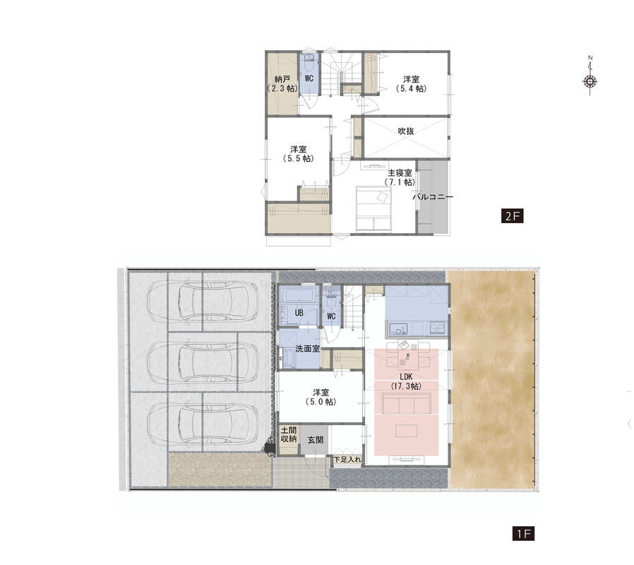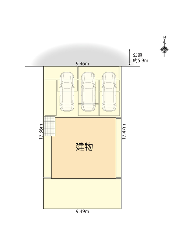 | 駐車場 | 3台 | 道路の幅員 | 北側5.9m |
