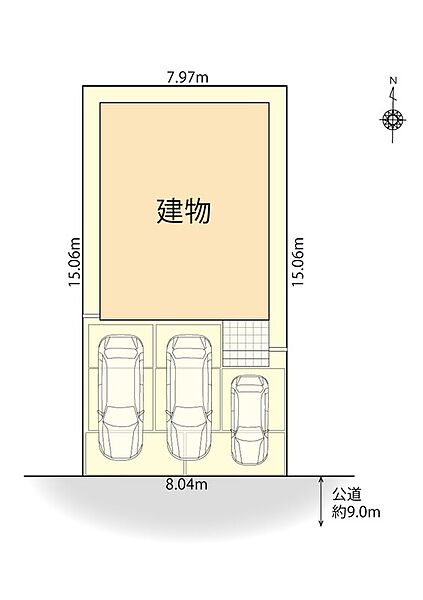 | 駐車場 | 3台 | 道路の幅員 | 南側約9.0m |