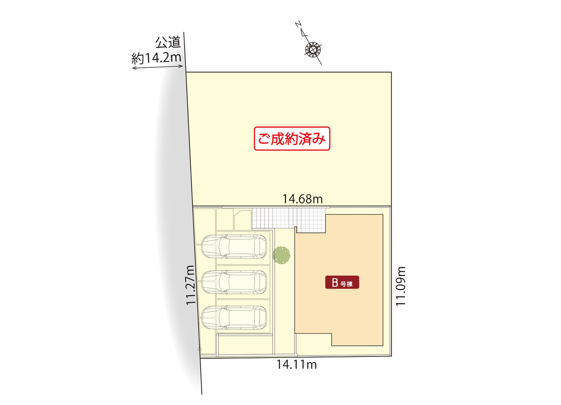 | 駐車場 | 3台 | 道路の幅員 | 北西側公道幅員約14.2m |