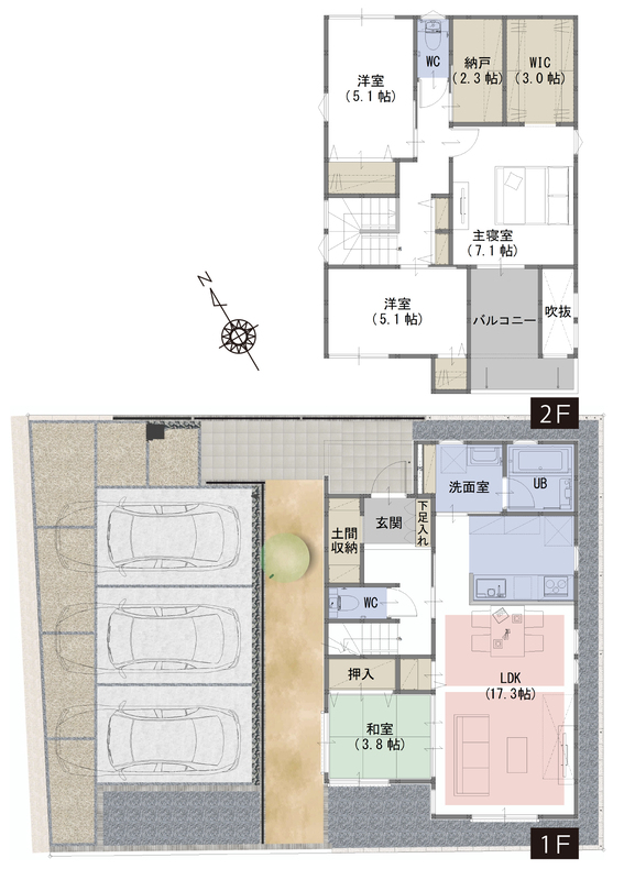WIC、納戸、土間収納など生活スタイルに合わせて住空間を確保