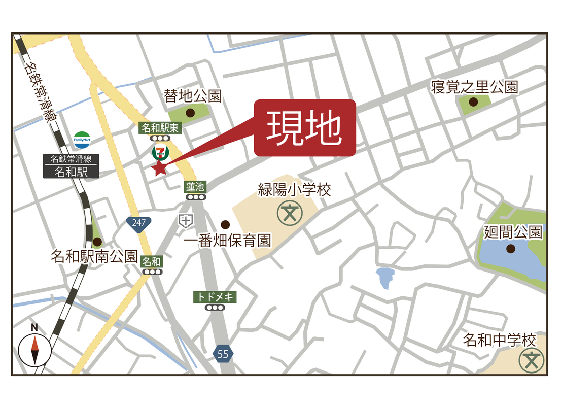 名鉄常滑線「名和」駅 徒歩3分 名鉄常滑線「柴田」駅 徒歩19分 らんらんバス「名和駅東」停 徒歩2分 |