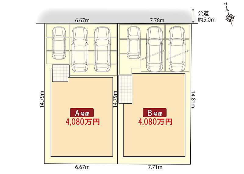 | 駐車場 | 3台(車種による) | 道路の幅員 | 北側5.0m |
