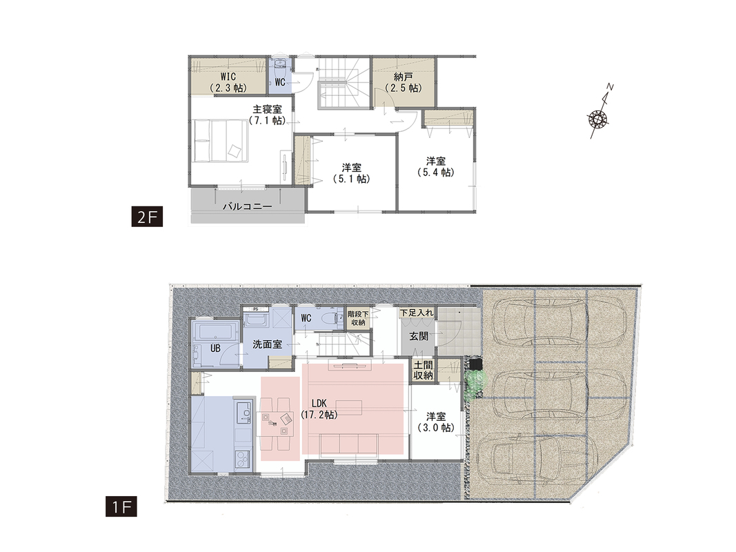 WIC、納戸、土間収納など生活スタイルに合わせて住空間を確保